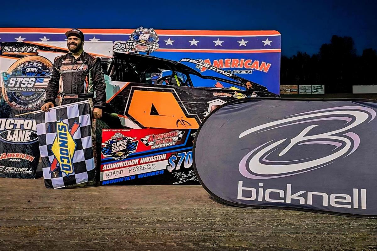 Anthony Perrego turned the tide on Thursday night, getting his first Bob Hilbert Sportswear Short Track Super Series (STSS) Fueled By Sunoco victory of 2024 in the ‘Adirondack Invasion’ at Airborne Park Speedway.